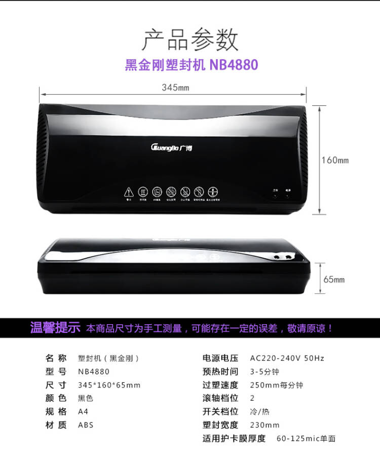 廣博 智能溫控黑金剛過塑機/塑封機 熱裱/冷裱過膠膜機A3 NB4881